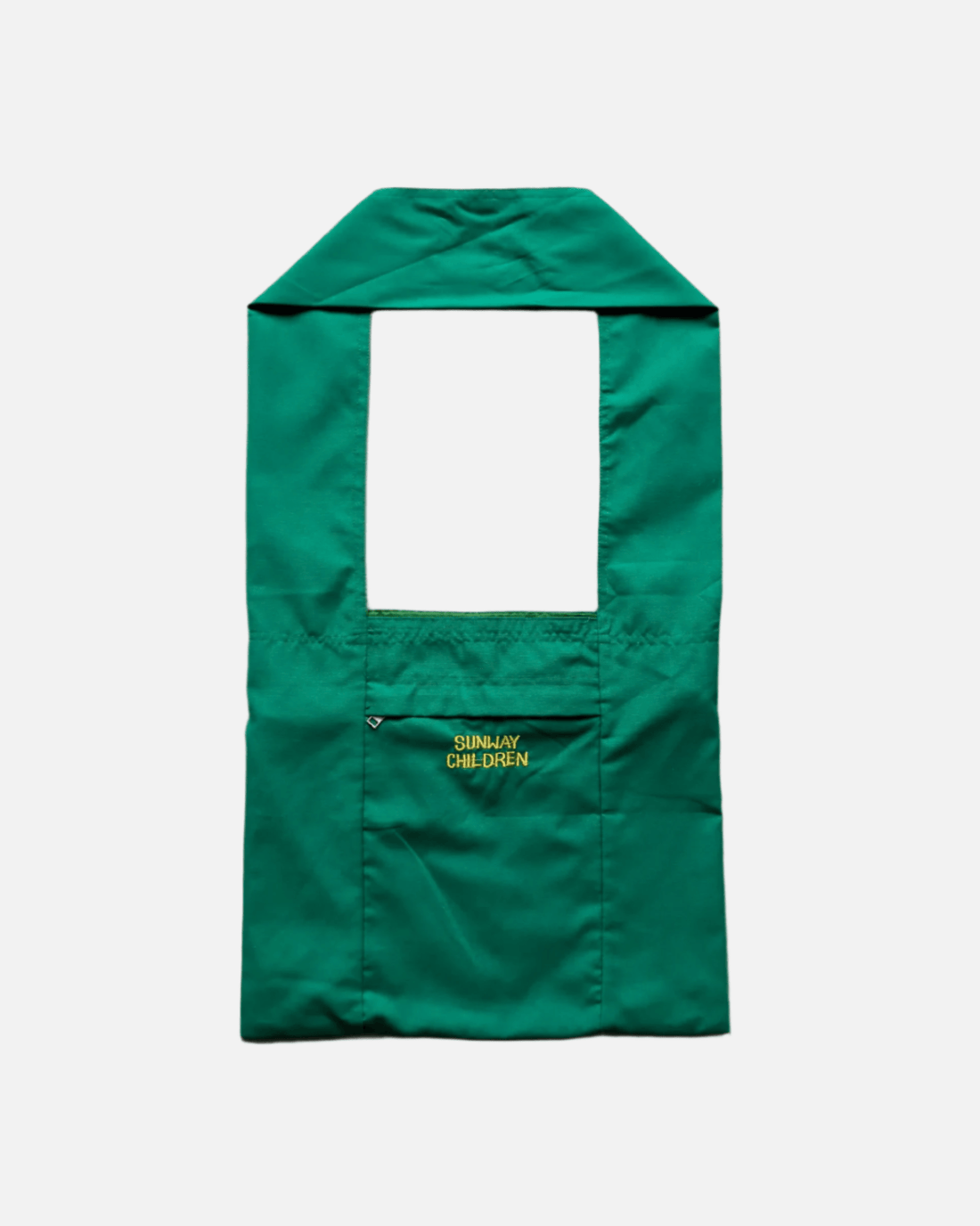 Vibrant Green fabric totebag with a shoulder strap, an embroidered logo and a secure zipper...
