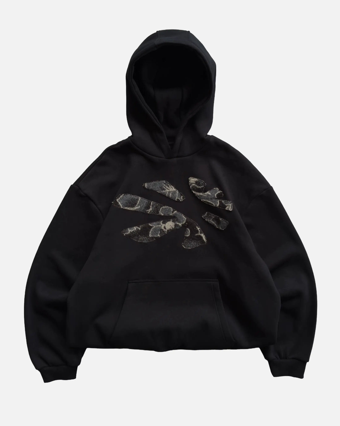 - 4 PIECE APPLIQUÉ- DOUBLE OVERLOCK STITCH- CLASSIC BLACK- BOXY, OVERSIZED FIT- 330 GSM BRUSHED...