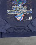 Vintage Navy 1993 Toronto Blue Jays Crewneck in XL. This classic crewneck features a rich navy color and commemorates the Blue Jays' 1993 World Championship win.