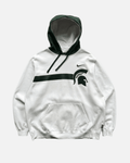Nike hoodie with embroidered green Michigan spartan emblem, Nike Swoosh, Kangaroo Pocket. Made in a dual-tone Hoodie style.
